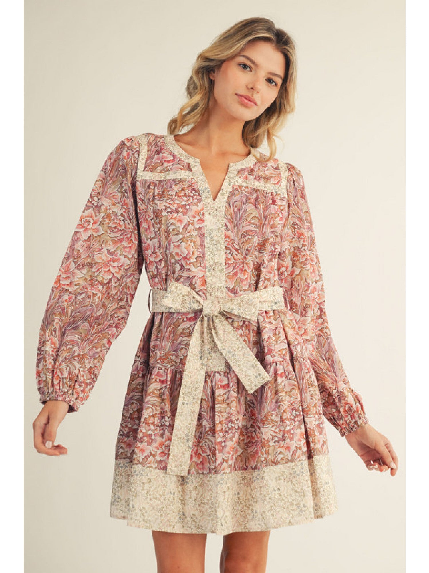 Clay Floral Long Sleeve Mini Dress
