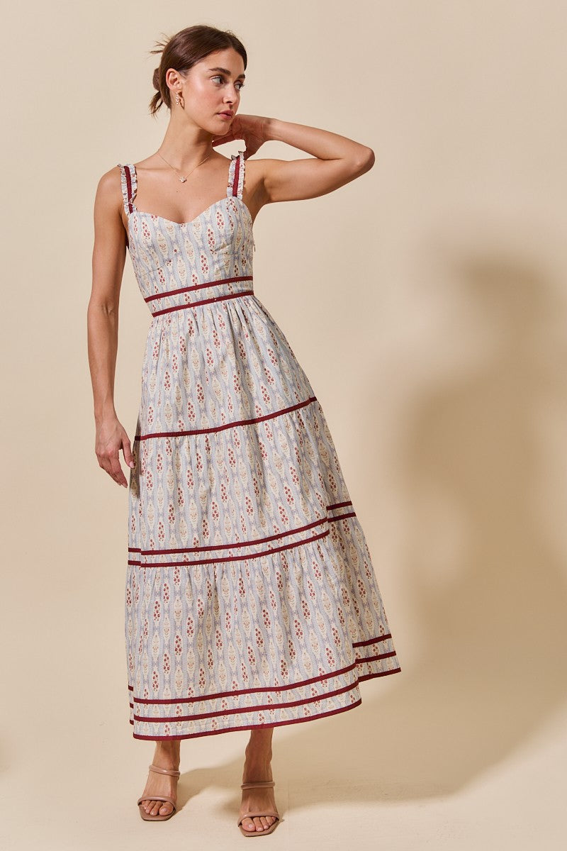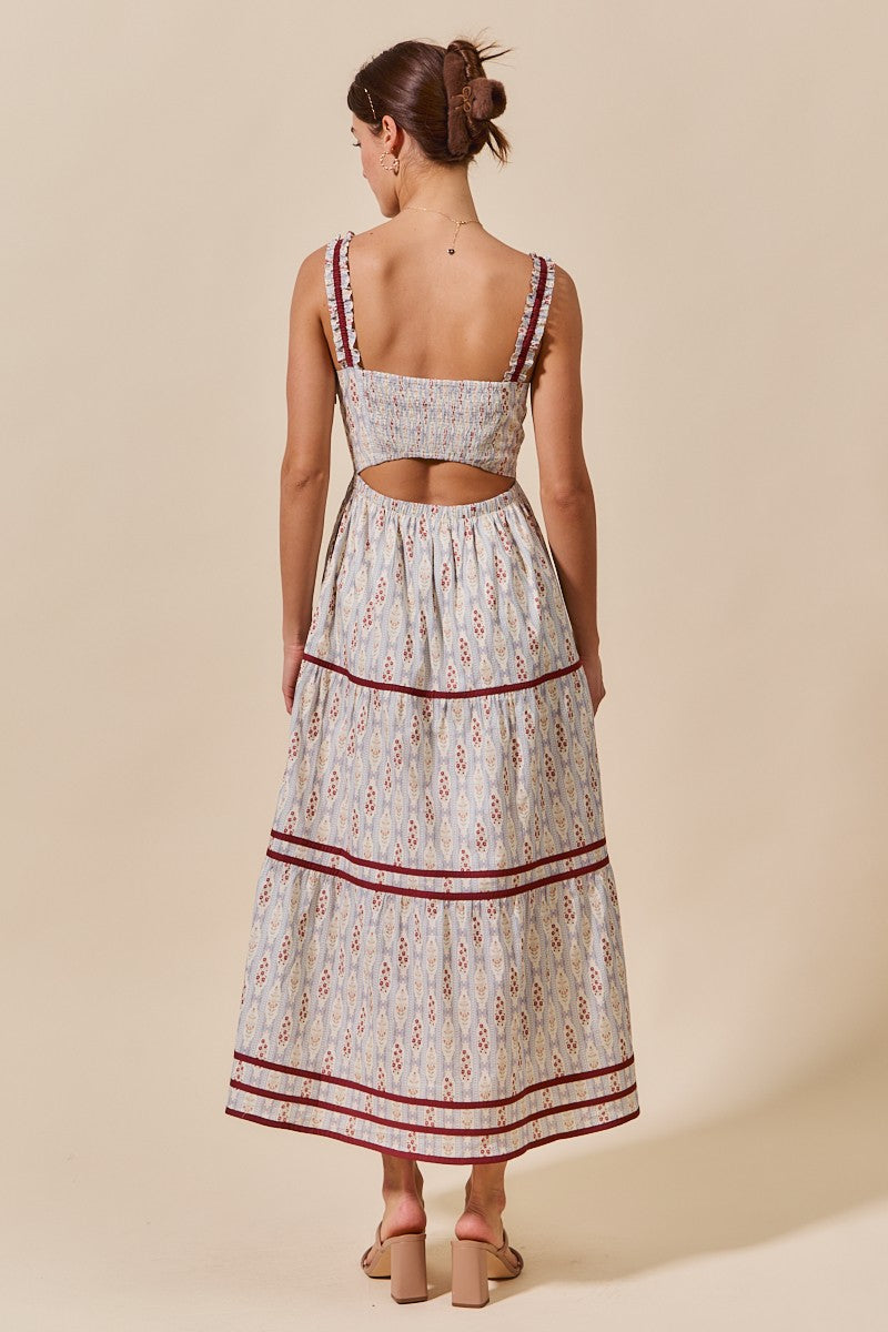 Dusty Blue Multi Floral Sleeveless Maxi Dress