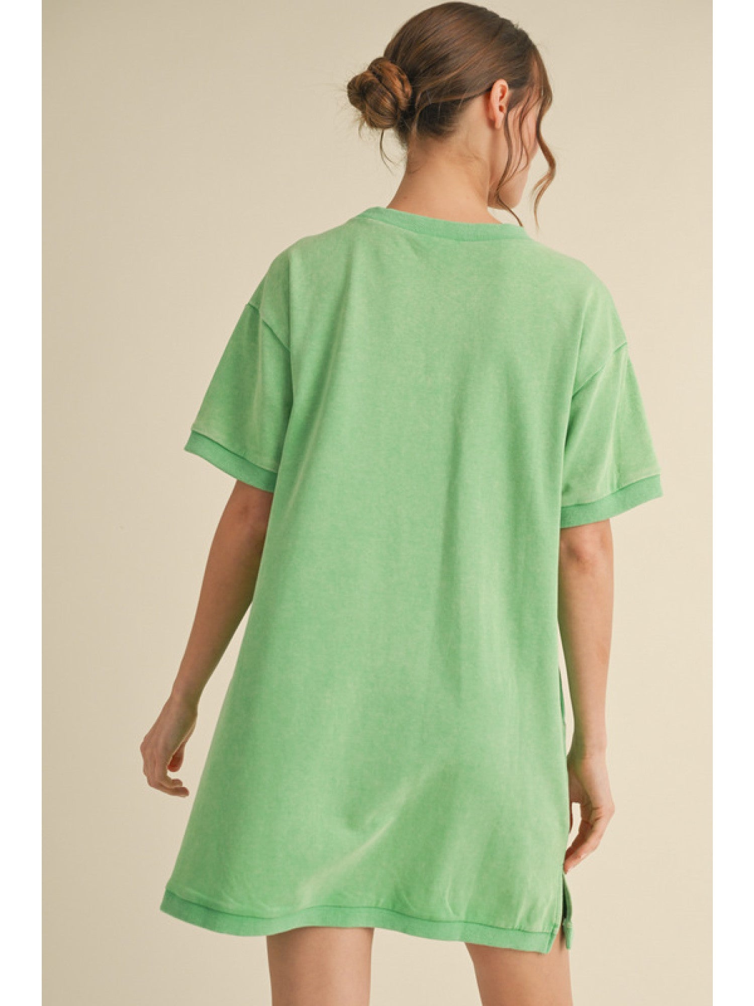 Green Short Sleeve Mini Dress w/ Smiley Graphic