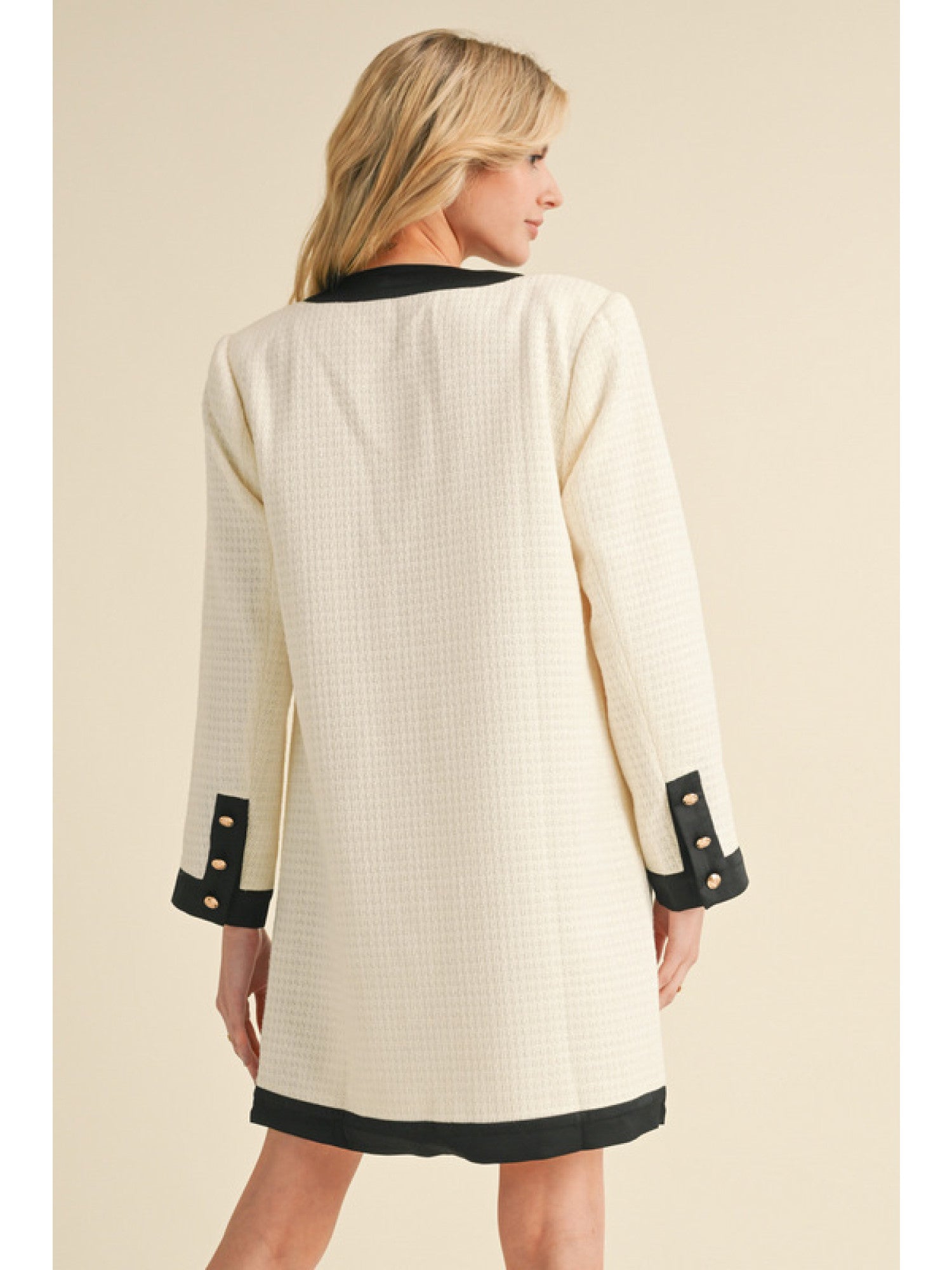 Ivory Tweed Long Sleeve Mini Dress w/ Bow Detail