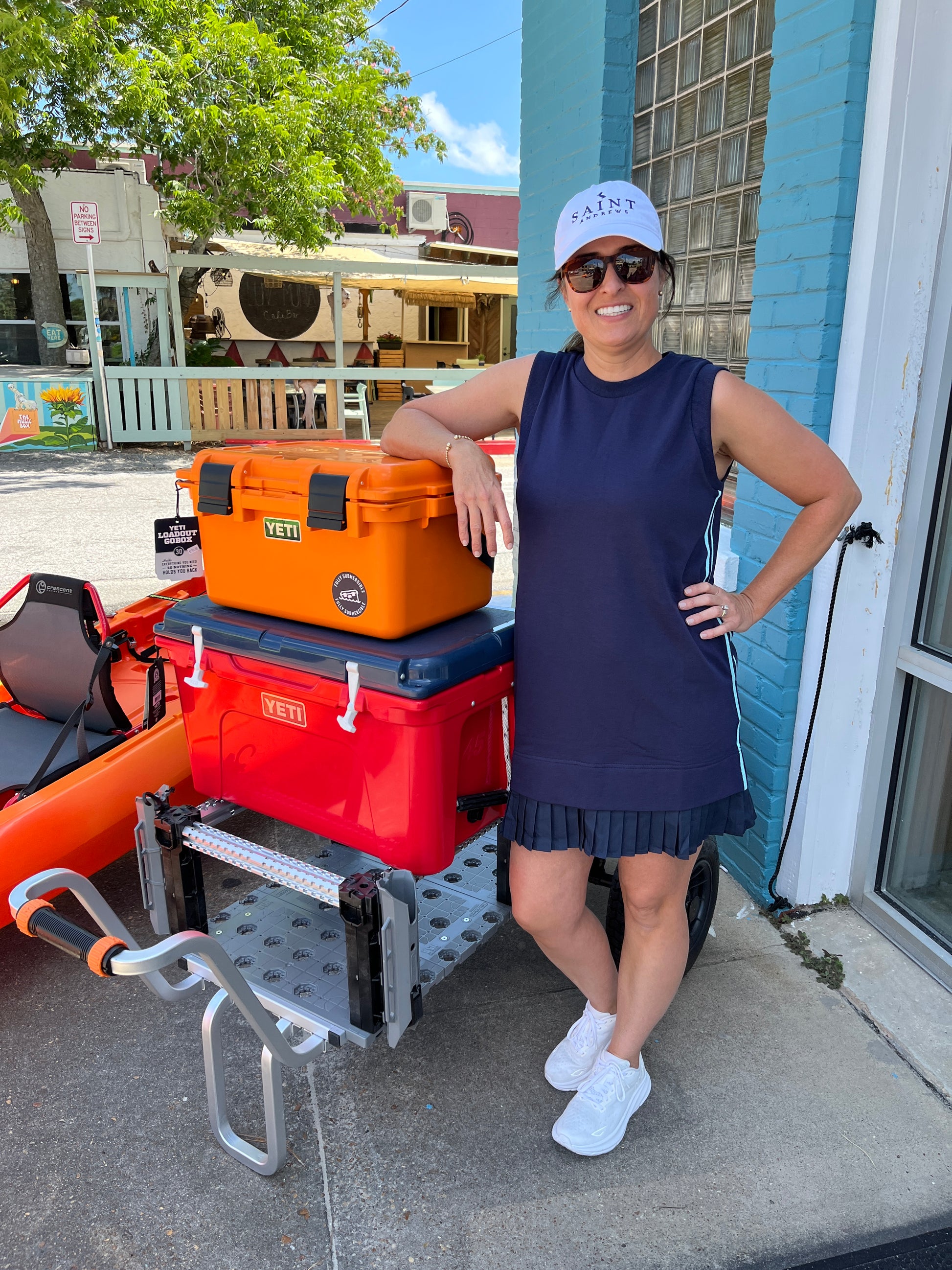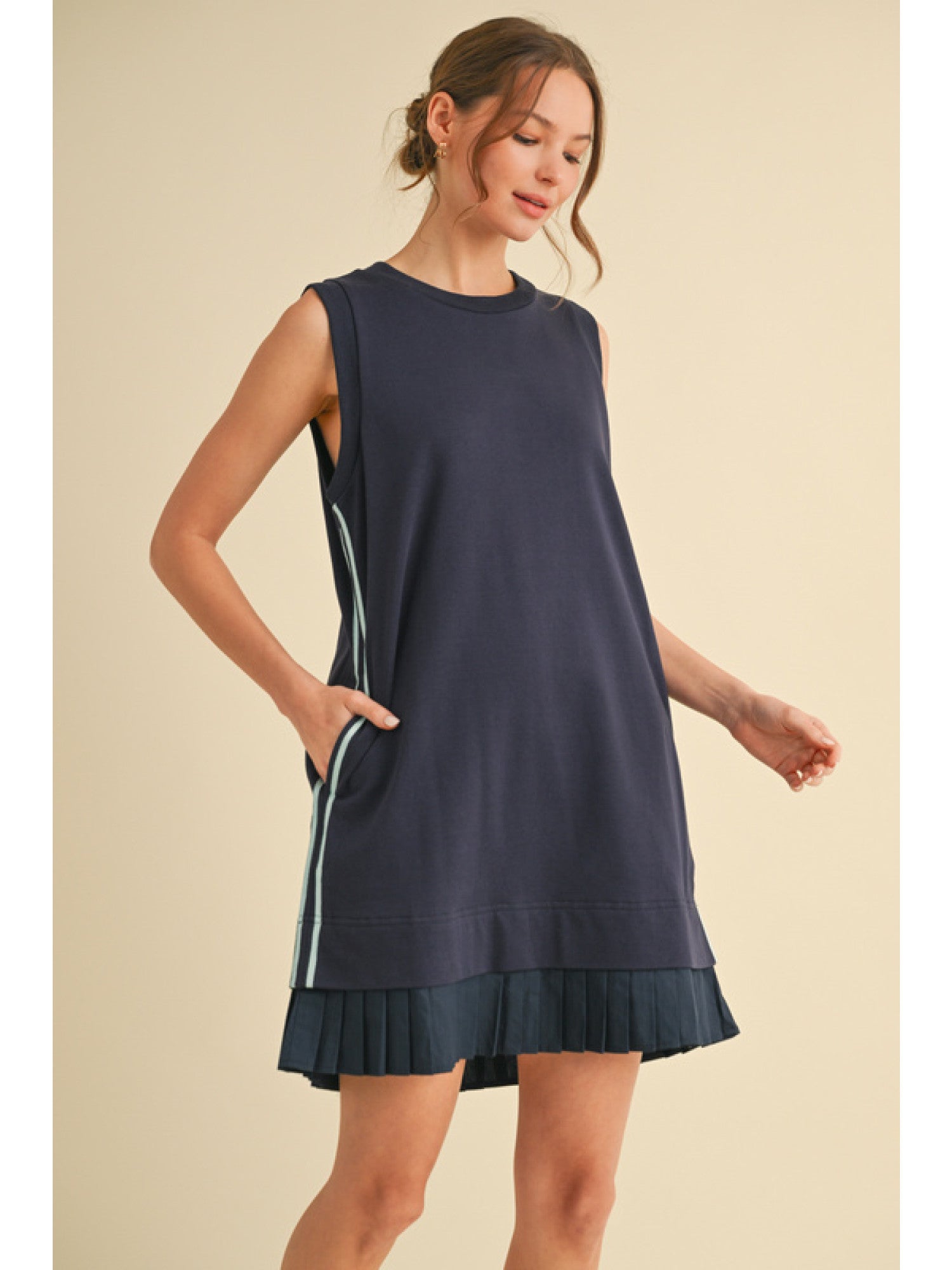 Navy Sleeveless Mini Dress w/ Pleated Hem