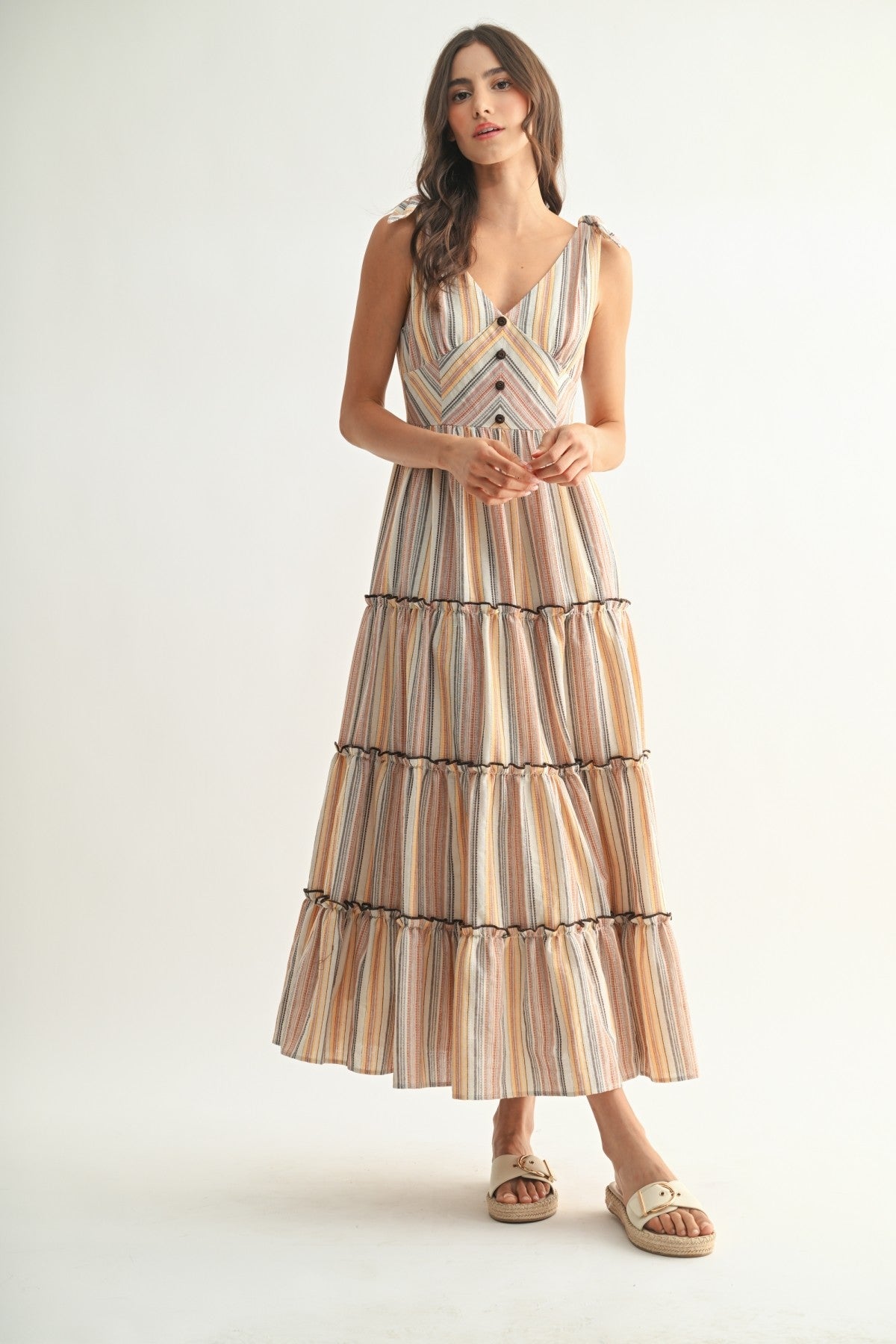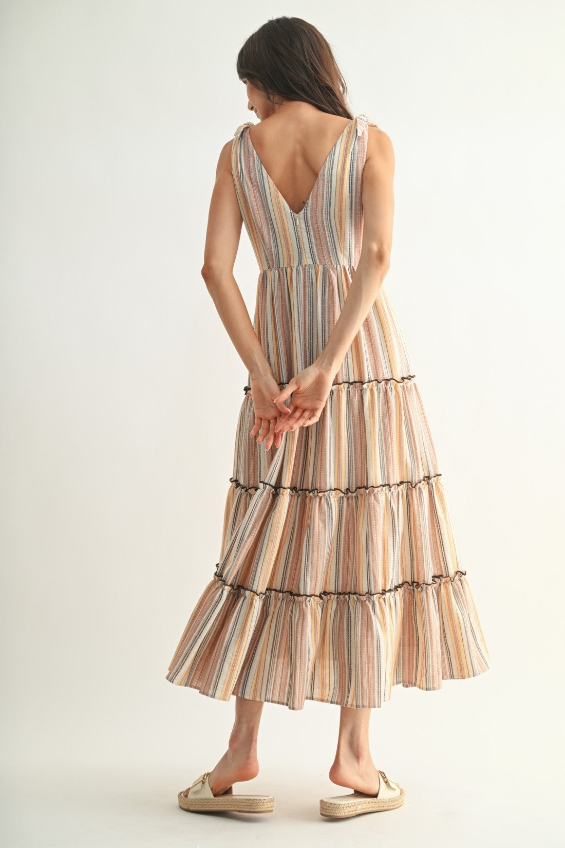 Orange/Brown Multi Striped Maxi Dress w/ Tie Straps