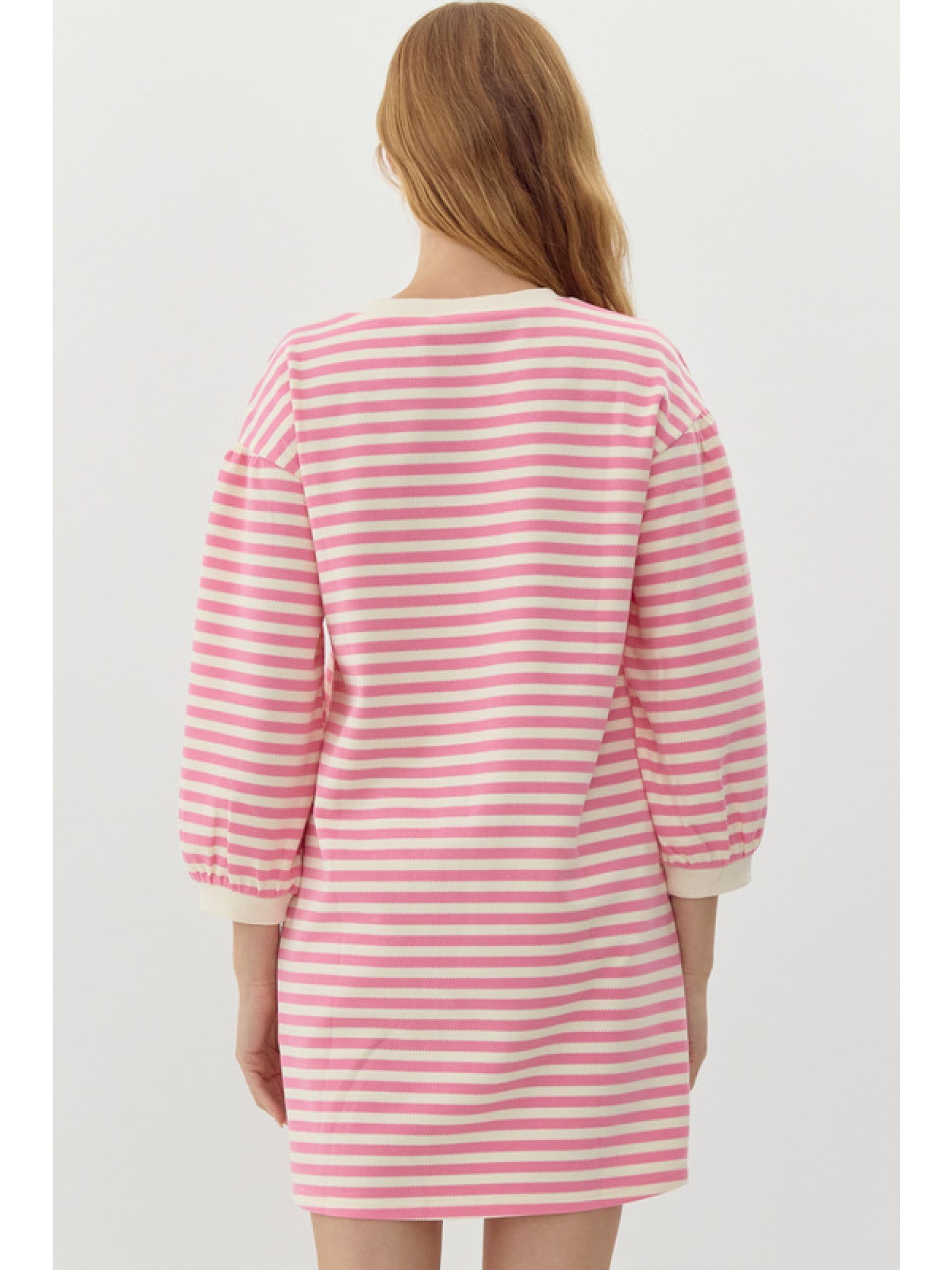 Pink Striped 3/4 Sleeve Mini Dress