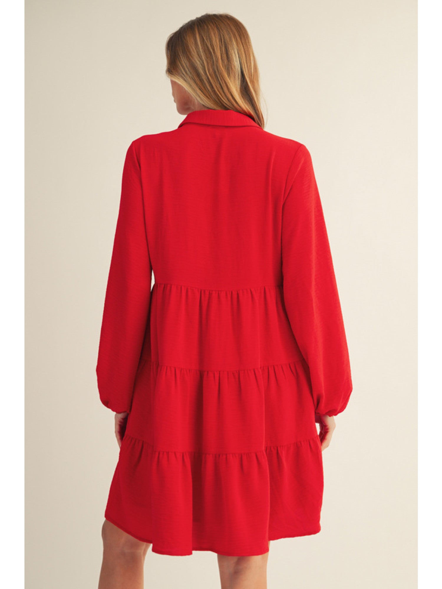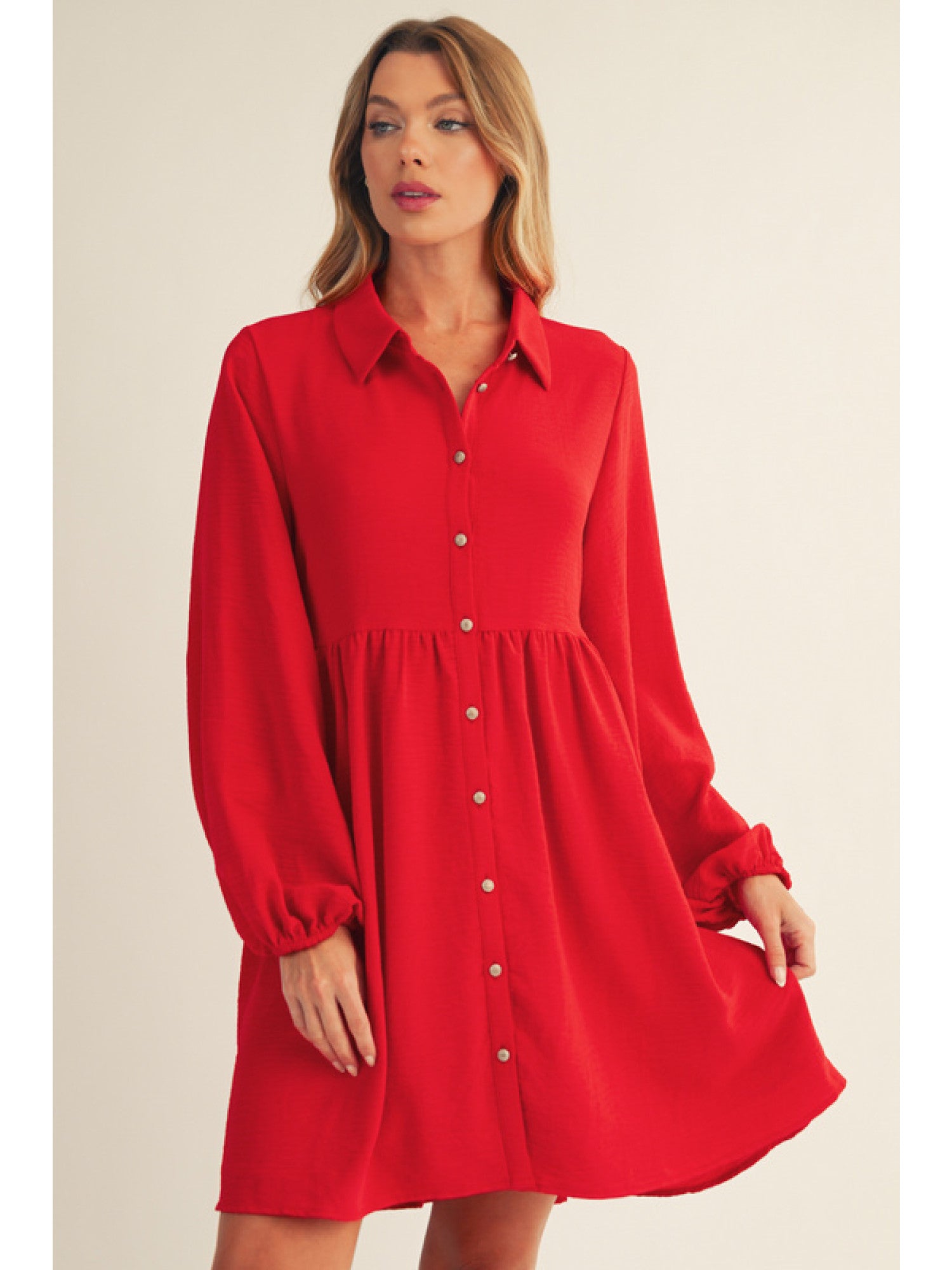 Red Button Down, Collared Long Sleeve Mini Dress