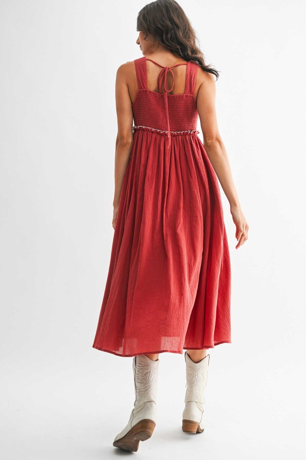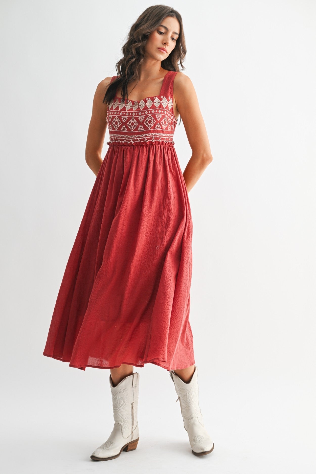 Rust Embroidered Sleeveless Maxi Dress w/ Pockets