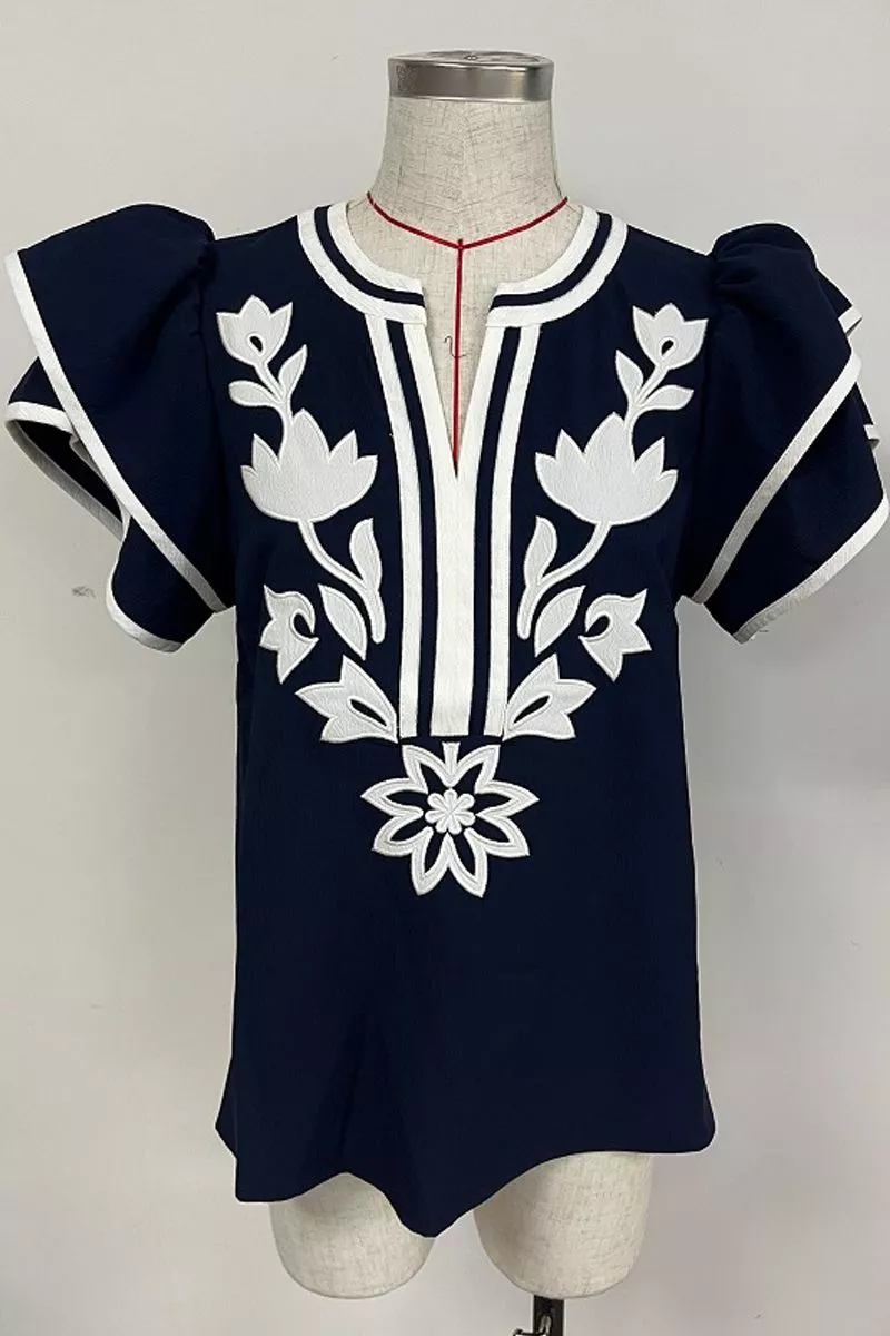 Short, Flutter Sleeve V-Neck Blouse