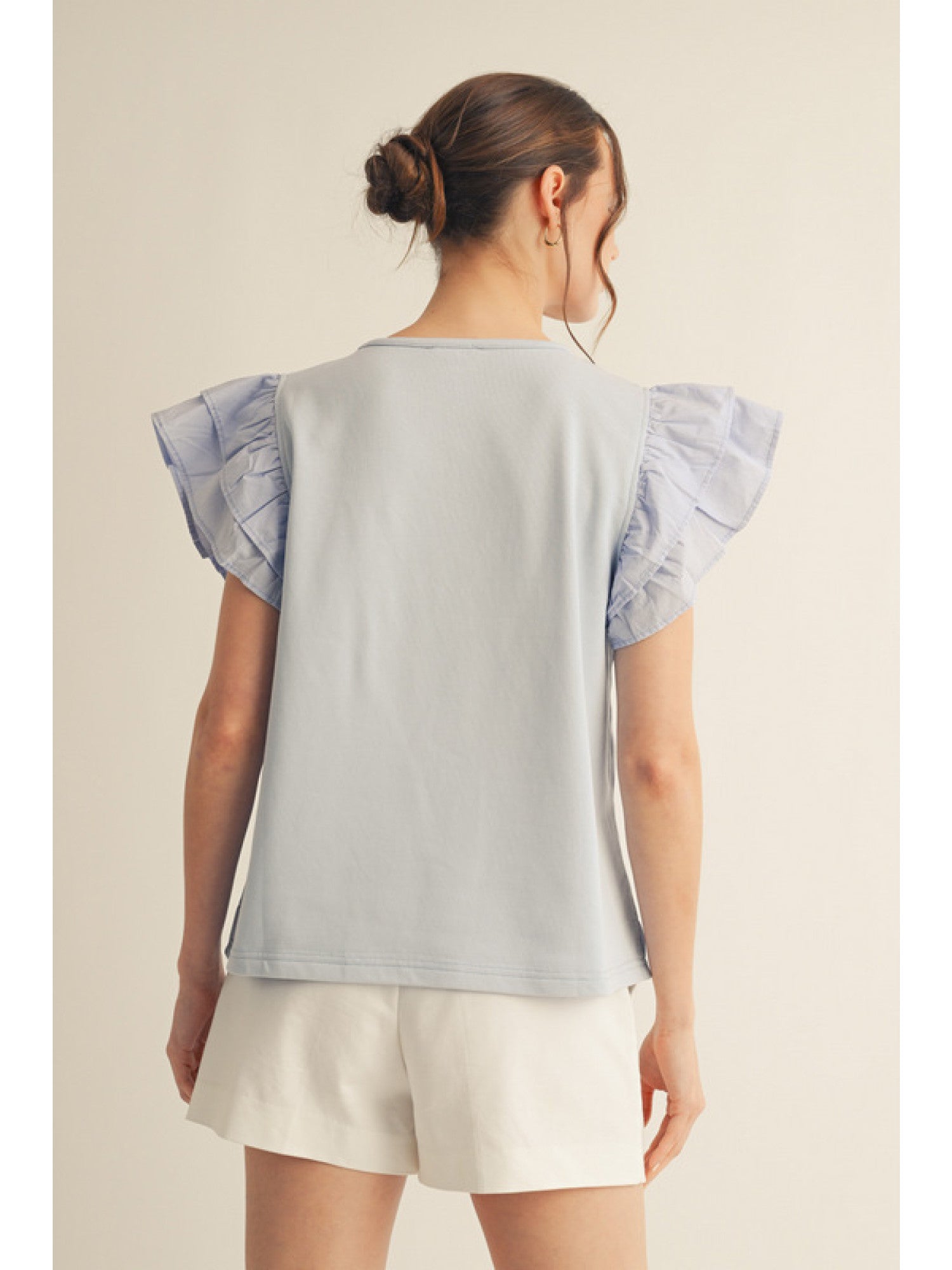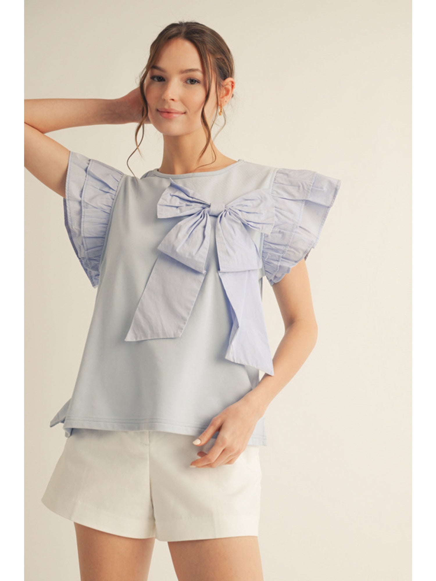 Sky Blue Ruffle Sleeveless Top w/ Bow Detail