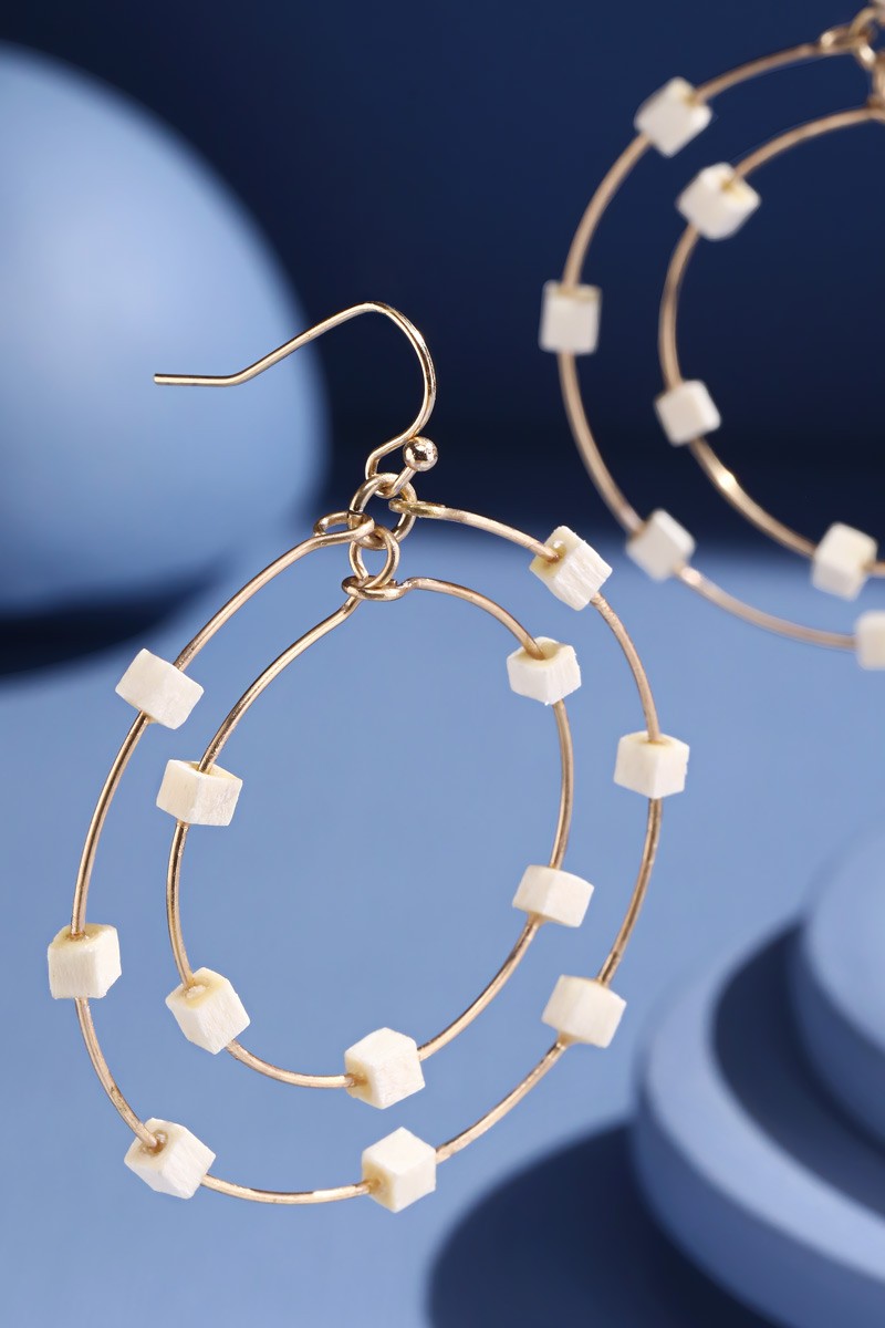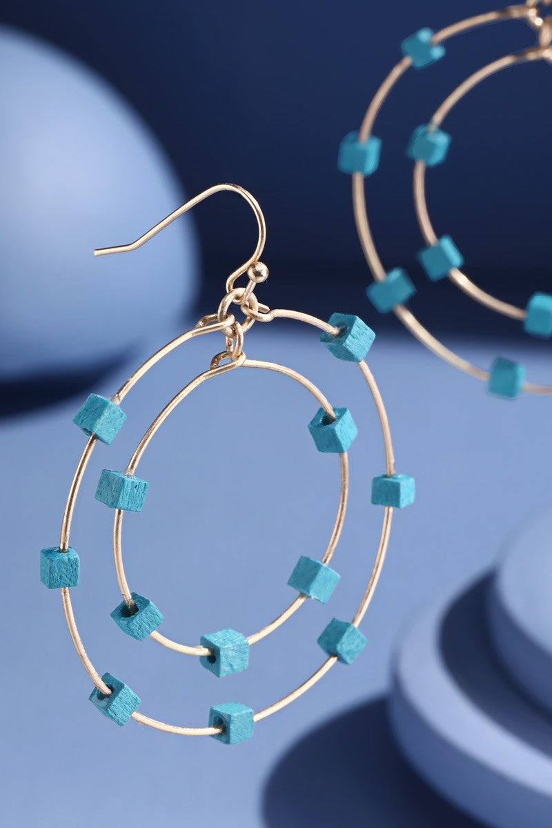 Two Tier Hoop Earrings w/ Wood Accents
