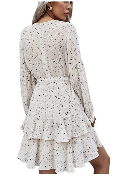 White Starry Print Long Sleeve Mini Dress
